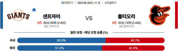 8월 30일 MLB 샌프자이 vs 볼티오리