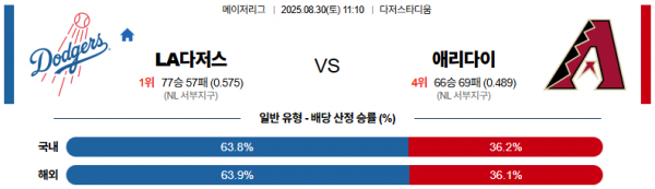 8월 30일 MLB LA다저스 vs 애리다이