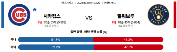 8월 19일 MLB 시카컵스 vs 밀워브루
