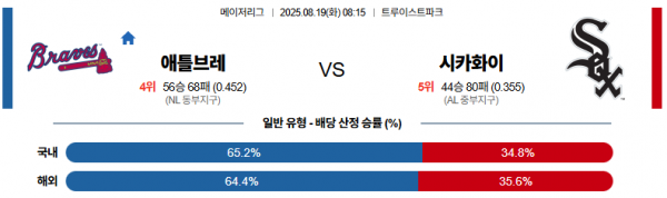 8월 19일 MLB 애틀브레 vs 시카화이