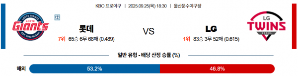 9월 25일 KBO 롯데 vs LG
