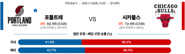 11월 20일 NBA 포틀트레 vs 시카불스