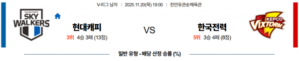 11월 20일 V리그 남자 현대캐피 vs 한국전력