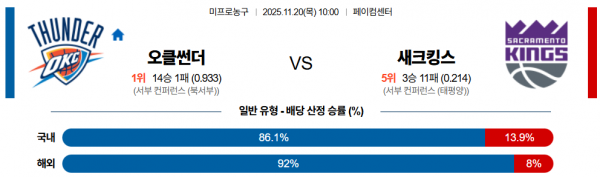 11월 20일 NBA 오클썬더 vs 새크킹스