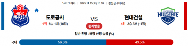 11월 15일 V리그 여자 도로공사 vs 현대건설