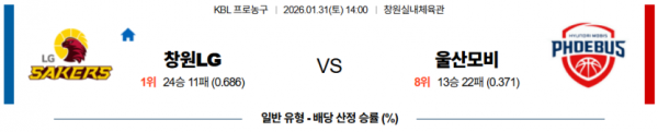 2026-01-31 14:00 KBL 창원 LG 울산 현대모비스