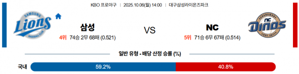 10053 국내야구분석 10월 7일 KBO 삼성 vs NC 등급아이콘 레벨아이콘 커뮤관리자 10.07 152