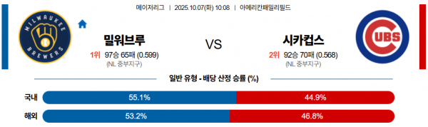 10월 7일 MLB 밀워브루 vs 시카컵스