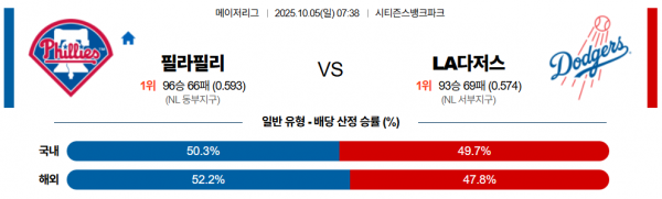 열람중 국내야구분석 10월 5일 MLB 필라필리 vs LA다저스 등급아이콘 레벨아이콘 커뮤관리자 10.04 254