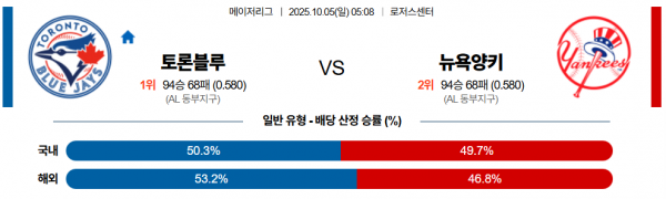 10월 5일 MLB 토론블루 vs 뉴욕양키