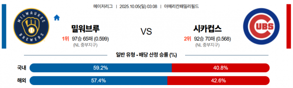 10월 5일 MLB 밀워브루 vs 시카컵스