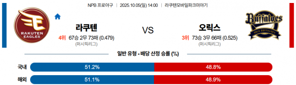 10월 5일 NPB 라쿠텐 vs 오릭스