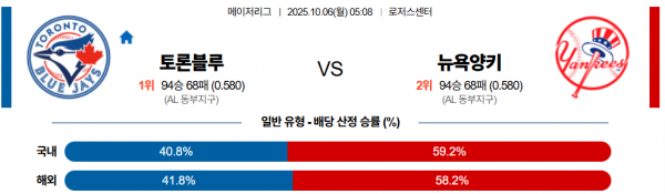 10월 6일 MLB 토론블루 vs 뉴욕양키