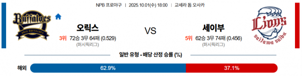 10월 1일 NPB 오릭스 vs 세이부