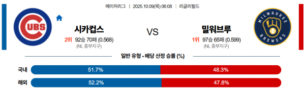 10월 9일 MLB 시카컵스 vs 밀워브루