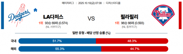 10월 10일 MLB LA다저스 vs 필라필리