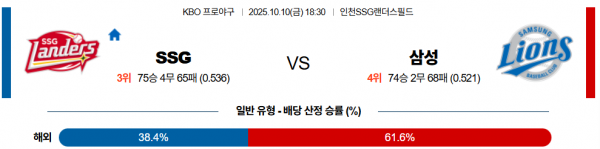 전날 경기는 최원태의 깜짝투가 경기의 성패를 갈랐다고 해도 과언이 아니다. 특히 SSG의 타선을 잘 묶은게 포인트. 하지만 삼성 역시 중반부터 완벽하게 타격감이 떨어지기 시작했다는 점은 절대로 무시할수 없는 부분이기도 하다. 와일드 카드전의 경기력을 고려한다면 김건우 카드는 의외로 먹힐수 있을듯. 가라비토 역시 피홈런이 적다는 점에서 SSG와 상성이 맞을수 있겠지만 2일 휴식후 등판은 위험 부담이 높다. 그리고 SSG의 타선은 전날 후반부터 페이스가 올라오기 시작했음을 생각해야 한다. 상성에서 앞선 SSG가 신승을 가져갈 것이다.