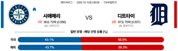 10월 11일 MLB 시애매리 vs 디트타이