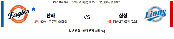 열람중 국내야구분석 10월 17일 KBO 한화 vs 삼성 등급아이콘 레벨아이콘 커뮤관리자 16:44 73