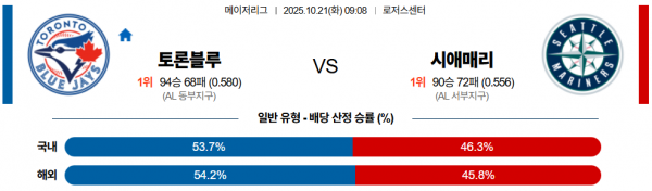 토론토의 타격이 드디어 빛을 발했고 결국 시리즈는 최종전까지 가게 되었다. 문제는 양 팀의 타격이 갈리고 있다는 점일듯. 토론토는 홈에서 타격이 살아났다는 점이 고무적인 반면 시애틀은 원정에서 특유의 장타력이 나오지 않는다는게 치명적이다. 거기에 비버는 빅게임 피처의 강점을 가지고 있는 반면 커비는 원정 약점이 명확한 투수. 물론 토론토의 불펜 변수가 있긴 하지만 5차전과 같은 사태가 또 나오진 않을 것이다. 선발에서 앞선 토론토 블루제이스가 승리를 가져갈 것이다.