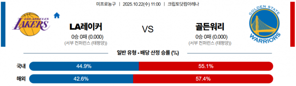 골든스테이트는 커리의 외곽에서 반등을 노리겠지만, 레이커스의 리밸런스 수비가 이를 제한할 것이다.