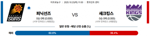 10월 23일 NBA 피닉선즈 vs 새크킹스