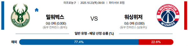 10월 23일 NBA 밀워벅스 vs 워싱위저