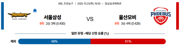 서울삼성은 니콜슨의 사이버 공격이 예리하지만, 전환이 불안정해 상대 트랜지션에 쉽게 붙어 있을 가능성이 있습니다.