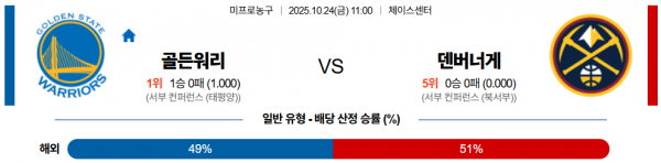 ⚠️ 결국 승부는 하프코트 전개와 리바운드 집중력에서 갈린다. 덴버의 투맨게임 완성도가 골든스테이트의 템포를 완전히 제압할 것이다!