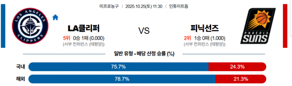 10월 25일 NBA LA클리퍼 vs 피닉선즈