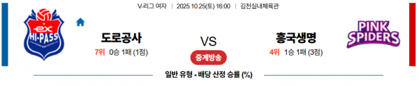 10월 25일 V리그 여자 도로공사 vs 흥국생명