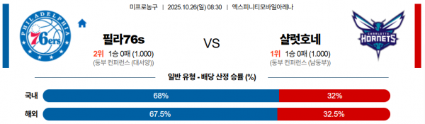 10월 26일 NBA 필라76s vs 샬럿호네