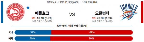 10월 26일 NBA 애틀호크 vs 오클썬더