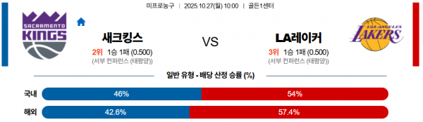 결국 세컨 찬스 확보 능력과 볼 순환의 완성도에서 새크라멘토가 레이커스를 압도할 가능성이 높다.
