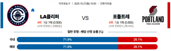 10월 27일 NBA LA클리퍼 vs 포틀트레