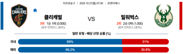 10월 27일 NBA 클리캐벌 vs 밀워벅스