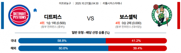 10월 27일 NBA 디트피스 vs 보스셀틱
