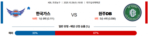 ◎ 가능성이 높은 선택 => 원주 DB 승리
