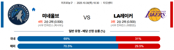 10월 30일 NBA 미네울브 vs LA레이커