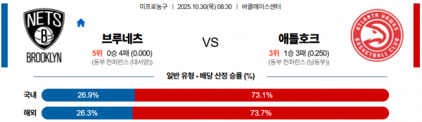 10월 30일 NBA 브루네츠 vs 애틀호크