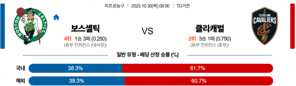 10월 30일 NBA 보스셀틱 vs 클리캐벌