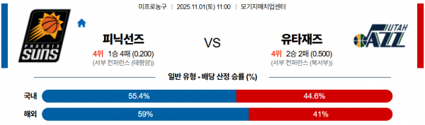 11월 1일 NBA 피닉선즈 vs 유타재즈