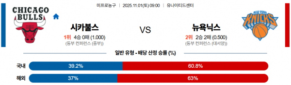 11월 1일 NBA 시카불스 vs 뉴욕닉스
