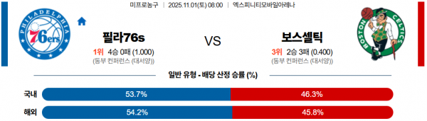 11월 1일 NBA 필라76s vs 보스셀틱