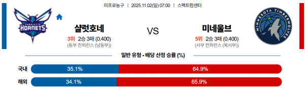 11월 2일 NBA 샬럿호네 vs 미네울브