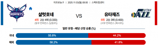11월 3일 NBA 샬럿호네 vs 유타재즈