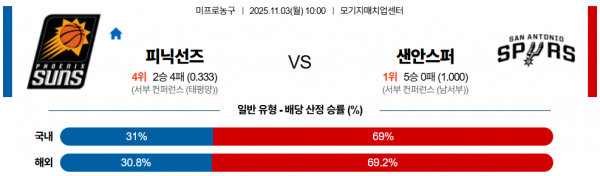 11월 3일 NBA 피닉선즈 vs 샌안스퍼
