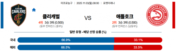 11월 3일 NBA 클리캐벌 vs 애틀호크