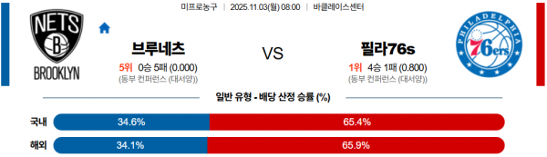 11월 3일 NBA 브루네츠 vs 필라76s