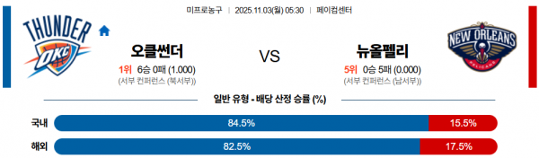 # 홈팀 : 오클라호마 시티 썬더 (6승)